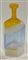 Bottiglia di forma esagonale in vetro soffiato trasparente arancio, lattimo e blu chiaro. Anni '80. (h cm 23,5)