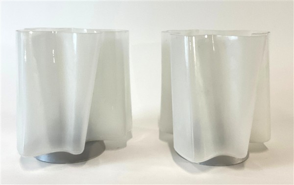 Coppia di plafoniere modello "Logico mini". Produzione Artemide, Milano, anni 2000. Alluminio, plastica e vetro incamiciato opalescente. (cm 20x19)