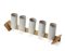 Set di cinque bicchierini in gres smaltato grigio, base in legno. Italia, anni '70. Marcato sotto la base. (l cm 61) (lievi difetti e restauri)