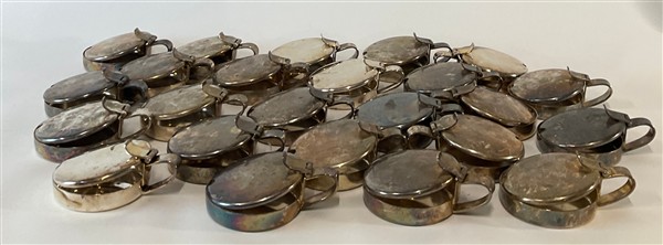 Ventiquattro porta formaggiere. Italia, anni '40/'50. Metallo argentato. Marcati a incussione sotto la base. (d cm 10) (lievi difetti e mancanze)