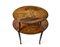 Tavolino con doppio ripiano ovale intarsiato in legni vari a paesaggio, monogramma GV. Gambe mosse scanalate. Francia, inizio secolo XX. (cm 70x78x52) (difetti)