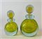Due boccette portaprofumo con tappo in vetro sommerso trasparente incolore e giallo. Murano, anni '50. (h max cm 17)