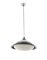 Lampada a sospensione in alluminio con diffusore in vetro incamiciato lattimo acidato sulla superficie esterna. Milano, anni '50. Recante etichetta della manifattura all'interno della struttura. (h cm 95; d cm 47)
