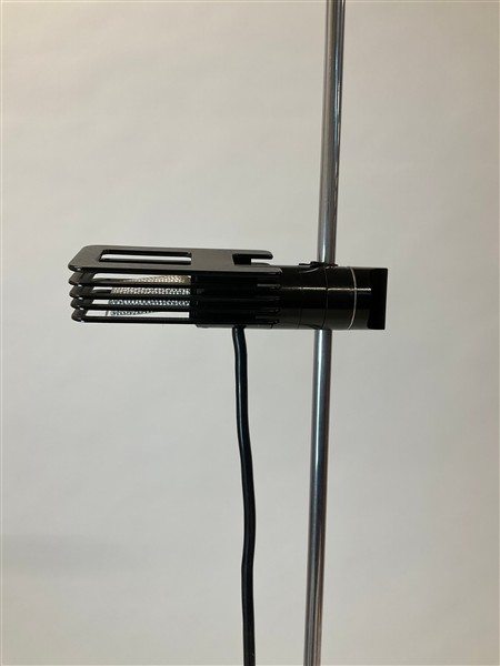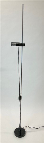 Lampada da terra modello "Wing 628". Produzione O-Luce, Italia, 1971. Acciaio verniciato nero e cromato, plastica. (h cm 205) (difetti)