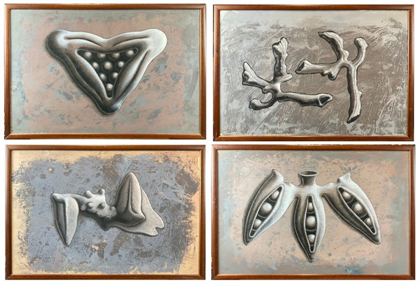 Carlos Forns Bada "Eslabones" 1990 Lotto composto da quattro acrilici su carta i