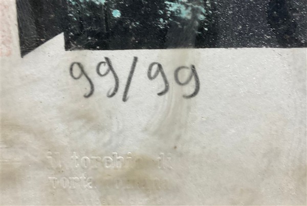 firmata, datata e numerata 99/99 in basso a matita. In cornice (difetti)