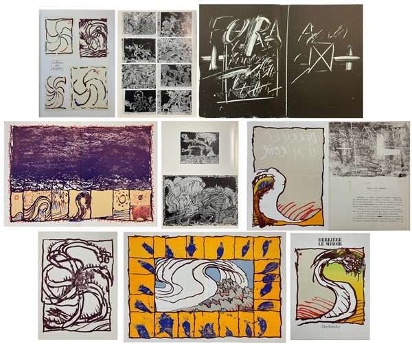 Lotto composto da quattro stampe offset (due a doppia pagina) di Alechinsky e una litografia di Tapies