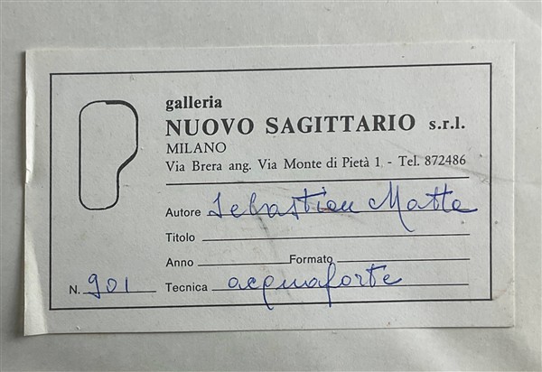 Galleria Nuovo Sagittario, Milano (etichetta al retro);