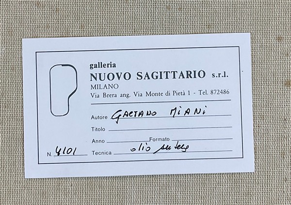 Galleria Nuovo Sagittario, Milano (etichetta al retro);