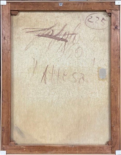 firmato in basso a destra; firmato, datato e titolato al retro. In cornice (difetti e restauri)