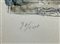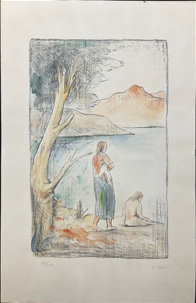 Carlo Carrà "Donne al lago" 1944 litografia acquerellata cm 50x32,5 firmata e nu
