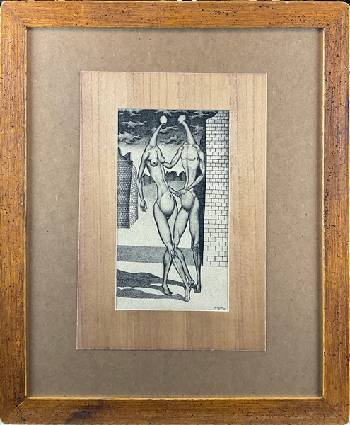 Anton Krejcar "Adamo ed Eva" 1950 china su carta cm 27x15 firmato e datato in ba
