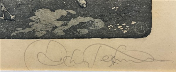 monogramma in lastra in basso a destra, firmata in basso a destra a matita. In cornice (lievi difetti)