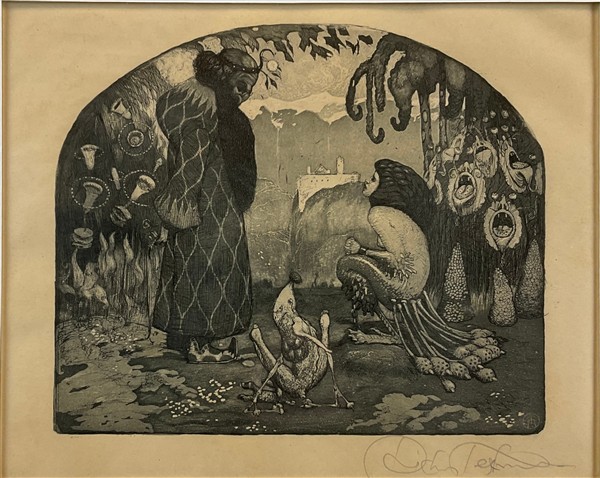 Richard Teschner "Il mago" acquaforte e acquatinta a colori (lastra cm 17,5x20,