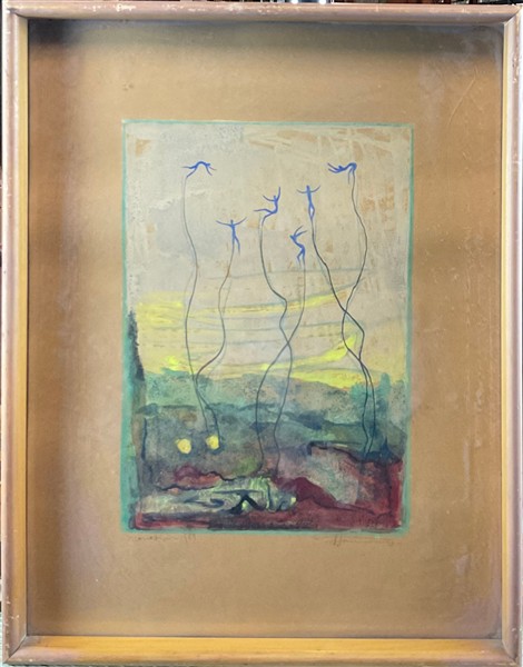 Lotto composto da un carboncino su carta e due monotipi di soggetto surrealista