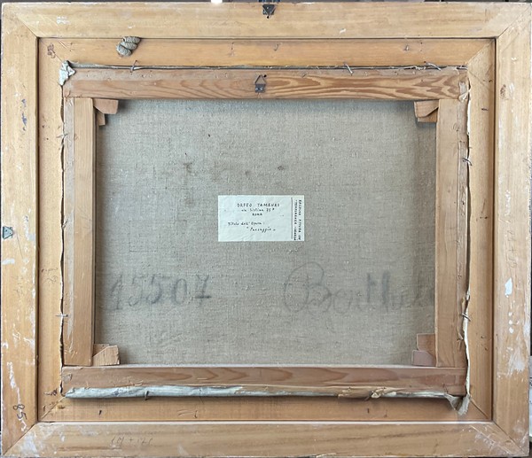 firmato in basso a destra; etichetta con i dati dell'opera al retro) ed iscrizioni al retro. In cornice (difetti)