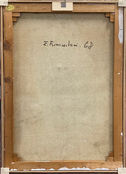 Edoardo Franceschini "Senza titolo" 1968 olio e collage su tela cm 69,5x49 firma