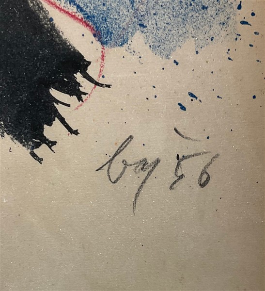 Enrico Baj "Uomo assalito dal mostro" 1956 litografia a colori cm 49x38,5 firmat