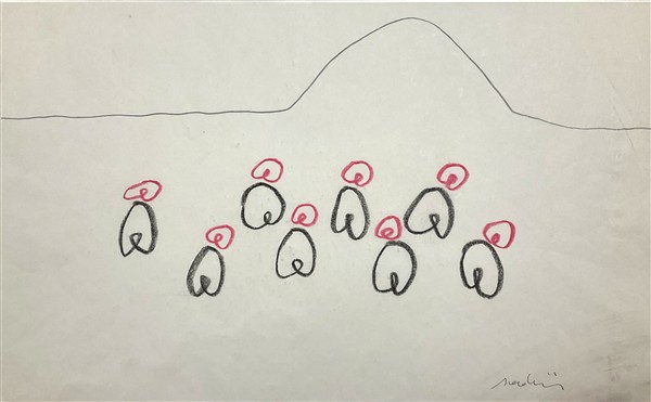 un disegno a matita e una tecnica mista su carta