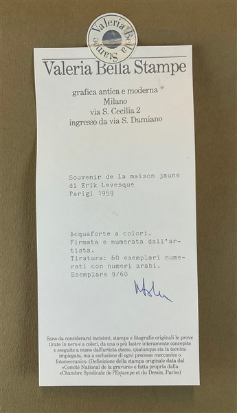 Erik Levesque "Souvenir de la maison jaune" 1959 acquaforte a colori lastra cm 3