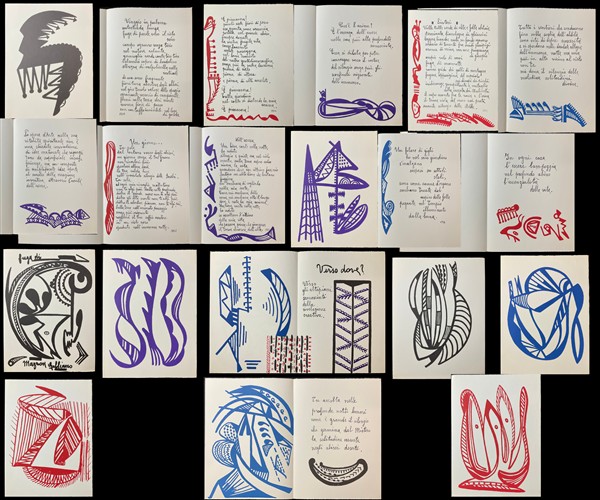libro d'artista composto da dieci quartini sciolti litografati con immagine e testo
