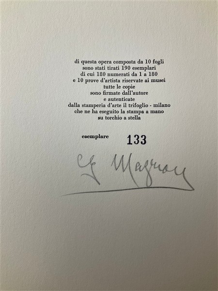 firma a matita e tiratura sul colophon. Es. 133/180. In cofanetto cartonato