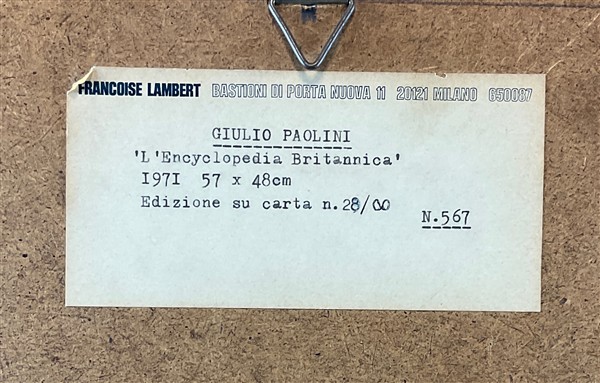 Giulio Paolini "The Encyclopedia Britannica" 1971 litografia cm 55x47 firmata, d