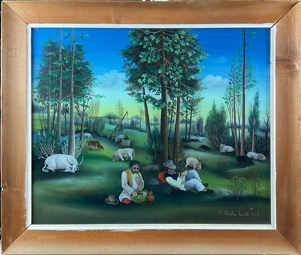 Josip Horvat "Senza titolo" 1969 tecnica mista su vetro cm 48,5x58,5 firmato e d