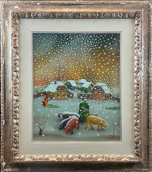 Ivan Generalic "Senza titolo" 1974 olio su vetro cm 55x45 firmato e datato in ba