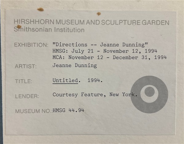 "Directions - Jeanne Dunning" Hirshhorn Museum and Sculpture Garden - Smithsonian Institution, 21 luglio - 12 novembre 1994