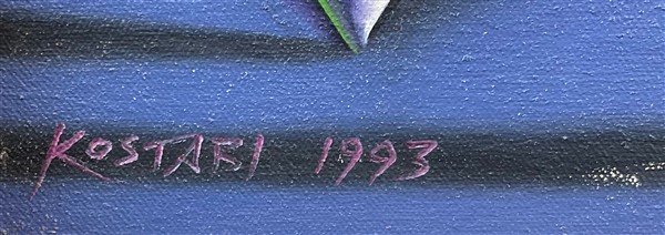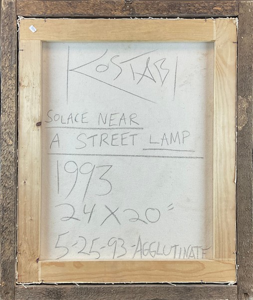 Kostabi Mark "Solace near a street lamp" 1993 acrilico su tela cm 62x51 firmato