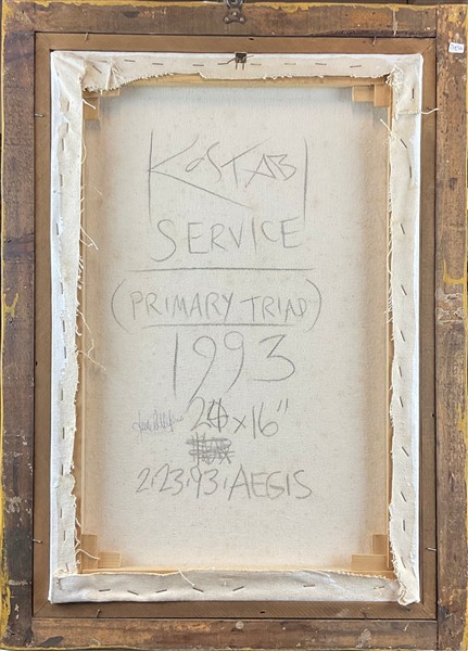 Kostabi Mark "Service (Primary Triad)" 1993 acrilico su tela cm 60,5x41 firmato