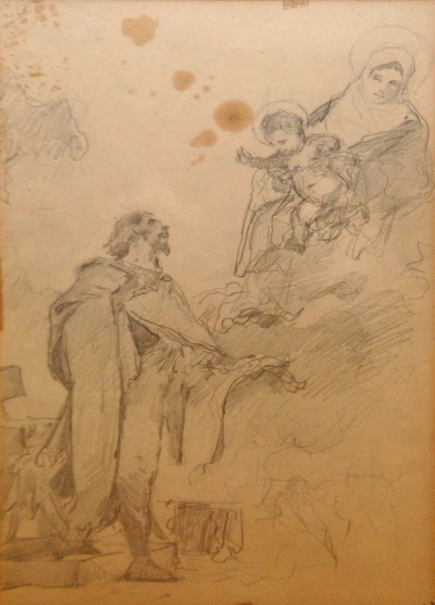 Lorenzo Delleani 1840/1908 disegno raff.Sacra Famiglia