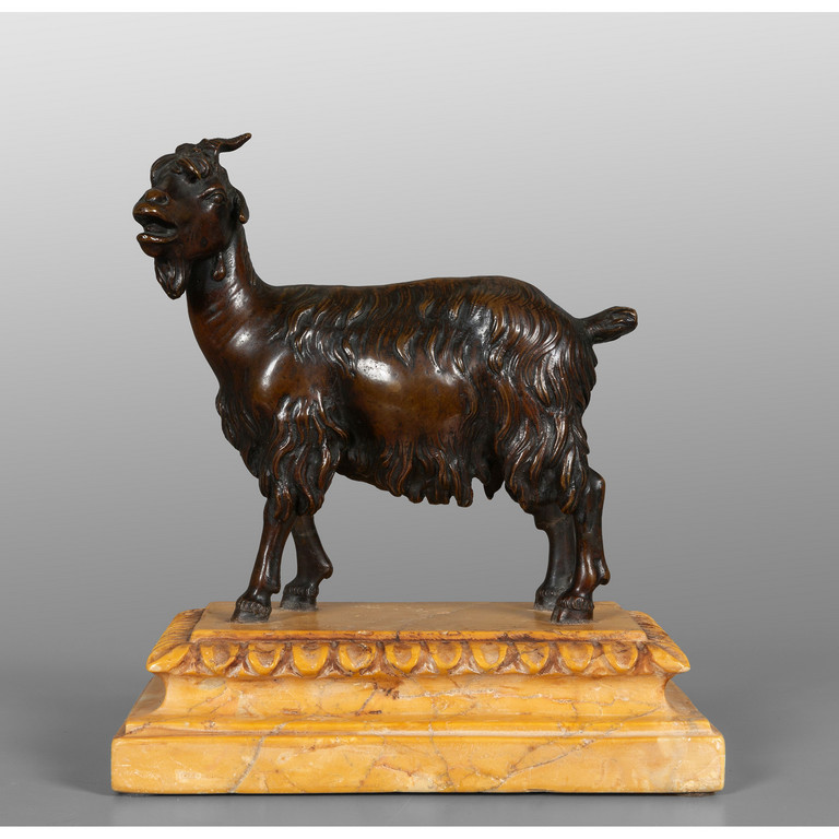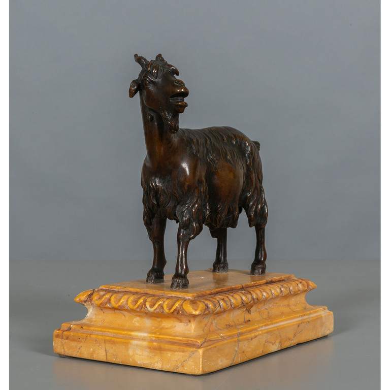Capretta scultura in bronzo a patina scura poggiante su base in marmo sec.XIX
