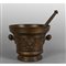 Mortaio in bronzo con fascia decorata con mascheroni e festoni manici a forma di testa di moro con pestello d.to 1630 Toscana sec.XVII