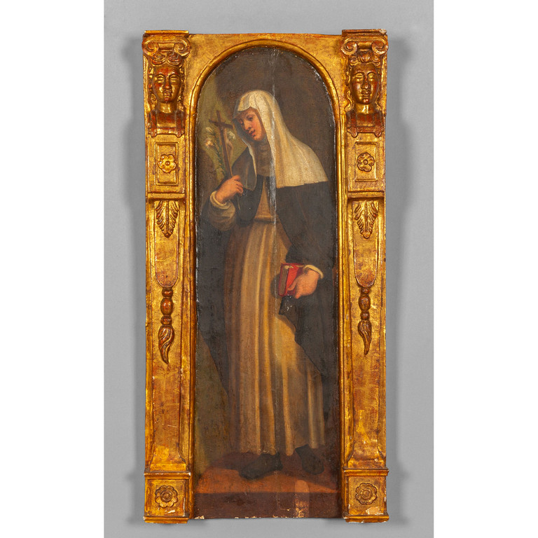 Scuola senese sec.XVII 'Santa' olio bella cornice a tabernacolo