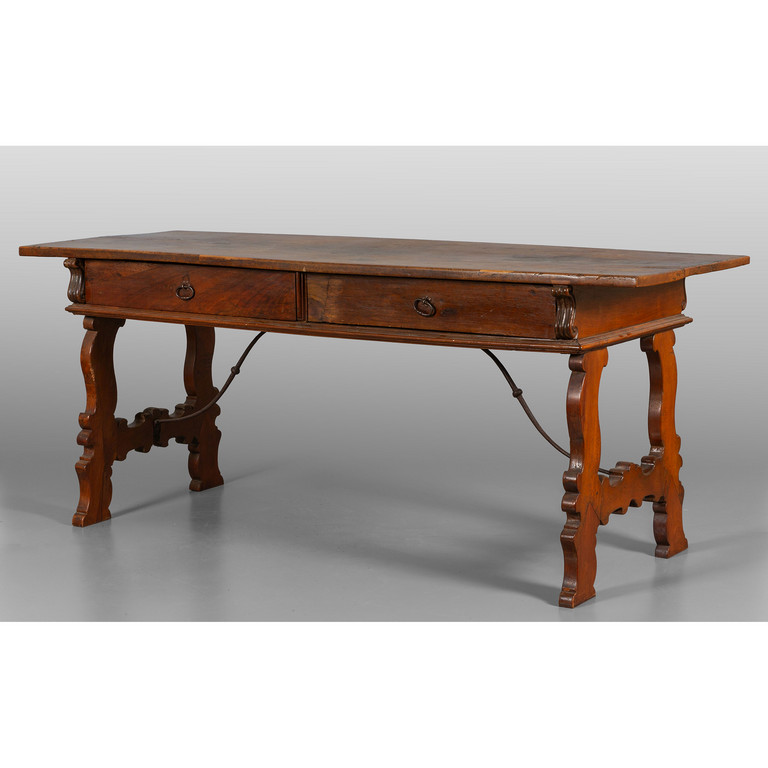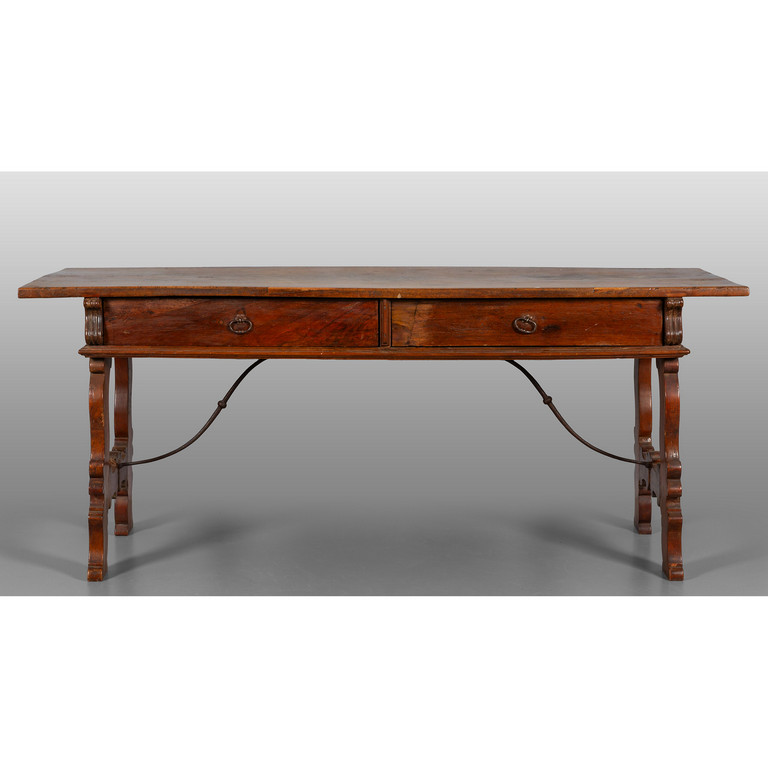 Tavolo a fratina in noce due cassetti nella fascia sec.XVII