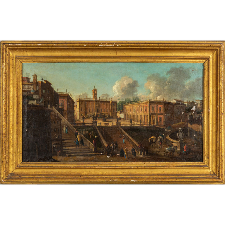 Scuola romana fine sec.XVIII Veduta del Campidoglio' olio