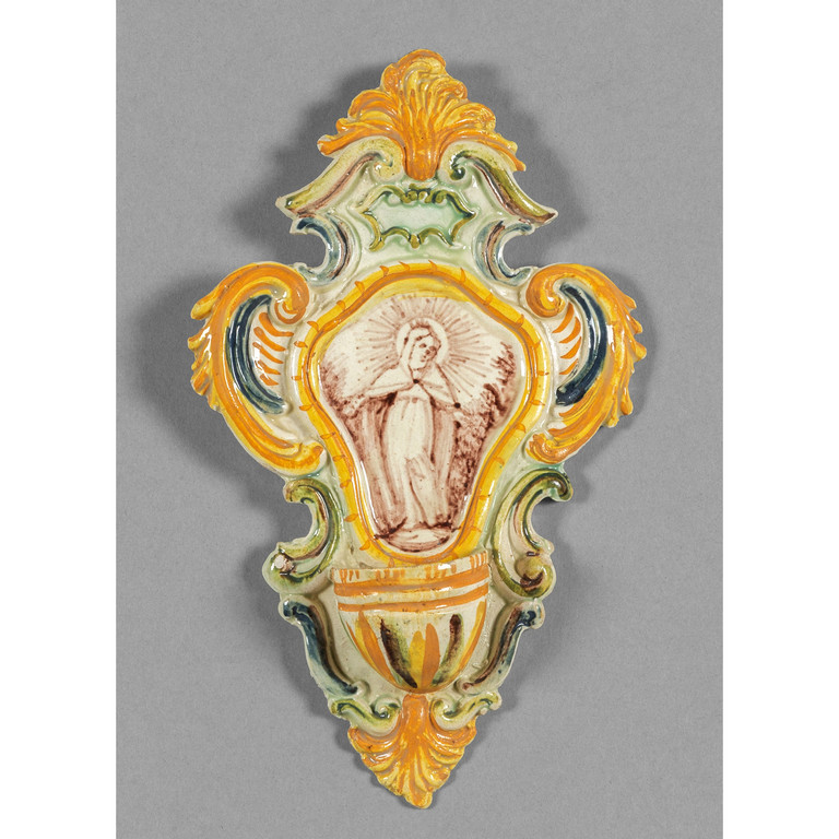 Acquasantiera in ceramica con raffigurazione dell'Immacolata Savona sec.XVIII