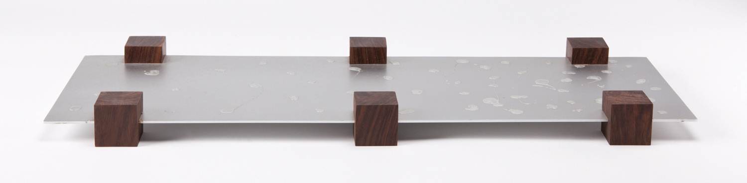 Bruno Munari (Milano, 1907-1998) Sottovaso 2034 in alluminio con decorazioni a cera Produzione: Danese, 1962 Alluminio e decorazione a cera, sei piedini in palissandro cm 3 h x 60 x 20
