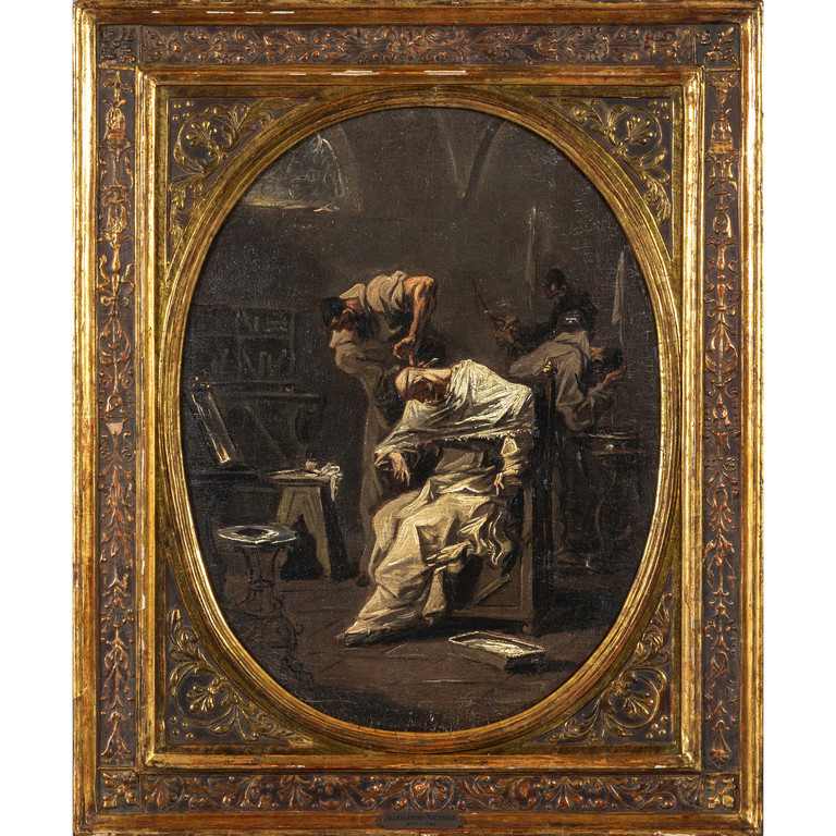 Alessandro Magnasco è stato un pittore italiano attivo principalmente a Genova e Milano. Figlio d'arte si formò presso la bottega di Filippo Abbiati a Milano sviluppando uno stile personale caratterizzato da pennellate rapide e luminose una forte drammaticità e un senso di inquietudine tipico della sua produzione. Le sue opere spesso critiche nei confronti della società e delle istituzioni ecclesiastiche ritraggono scene di vita conventuale episodi di mendicanti e rappresentazioni teatrali contribuendo alla nascita di un genere pittorico autonomo e originale.