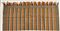 Scialle Kashmir, Inghilterra, secolo XIX. Tessuto a mano in lana con telaio a tiranti. Decoro a baiadera ispirato agli scialli indiani del Kashmir del secolo XVIII-XIX. Le frange alle testate sono formate dagli orditi colorati che formano il tessuto nei toni del bianco, rosso, giallo e blu (cm 125x124) (difetti)