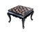 Tavolino in legno verniciato nero, piano con inserti in porcellana dipinta con