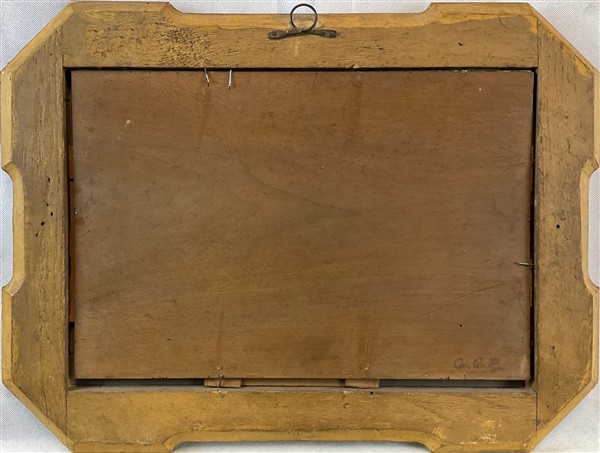Scuola nordica del secolo XIX "Paesaggio" olio su cartoncino applicato su tavo