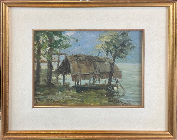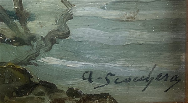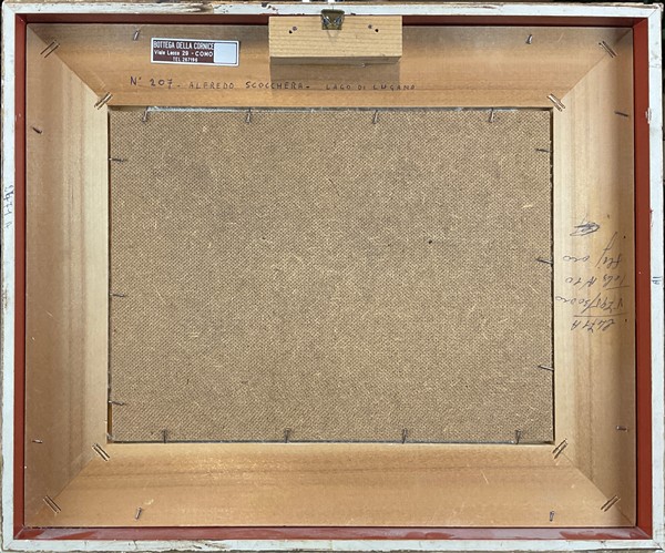 Alfredo Scocchera "Lago di Lugano" olio su masonite (cm 17,5x20,5) firmato in b