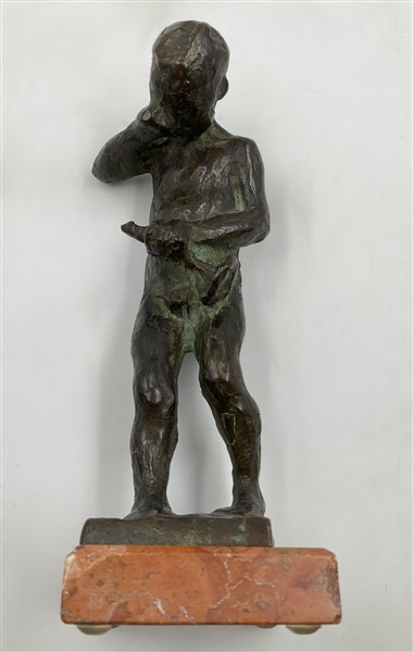 Luigi Panzeri "Bambino" scultura in bronzo poggiante su base in marmo (h cm 12)