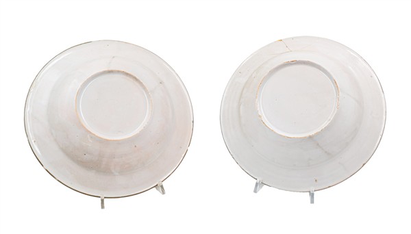 Manifattura di Faenza, secolo XVIII-XIX. Lotto composto da due piatti fondi in