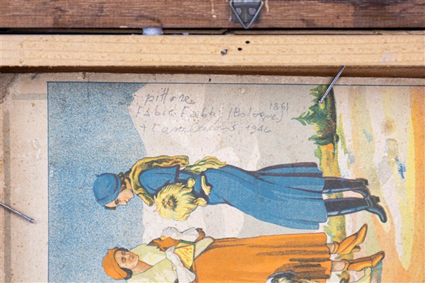 Lot 343 | Ignoto del secolo XX "Contadine africane tra covoni" olio su cartoncino (cm 2