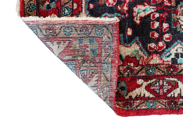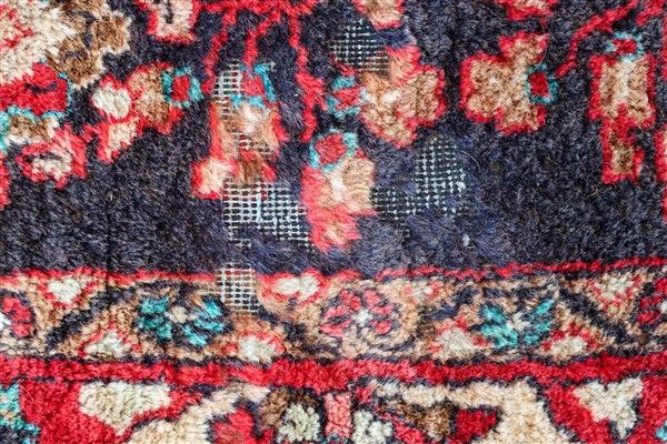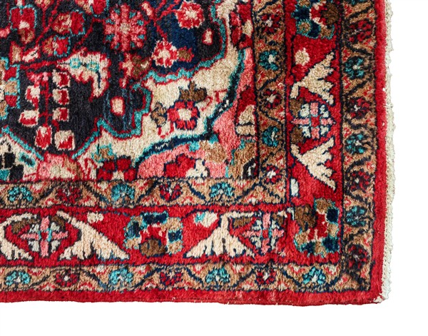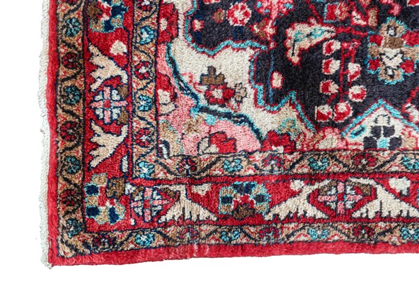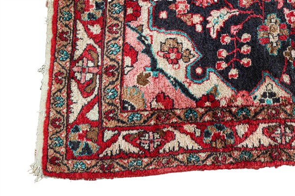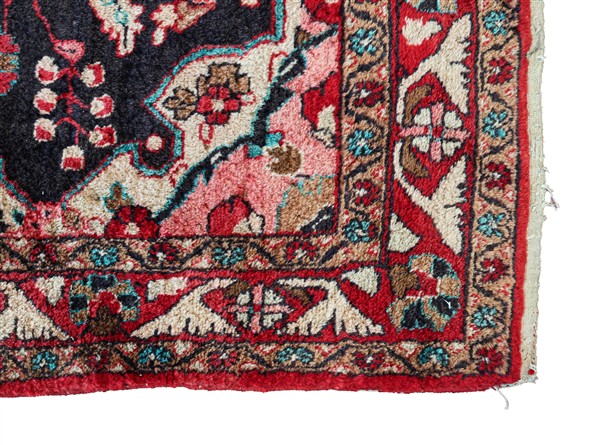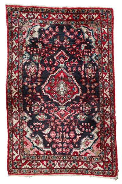 Tappeto Kirman, Persia, secolo XX. Decoro con medaglione rosso su fondo nero (cm 200x131) (difetti e rapature)