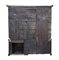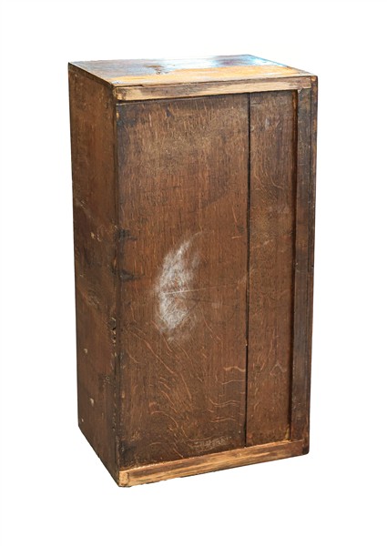 Mobile a due corpi in rovere, parte superiore a tre ante pannellate e tre casse